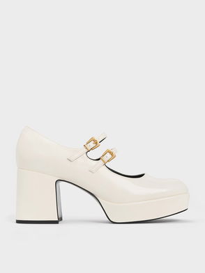 From the trapeze heels to the sleek square-toes, these chalk-white shoes are chic and cool while offering incredible versatility. Thanks to its moderate 4cm elevation and adjustable straps, you will be able to wear them all day long. Style these with a cream collared blouse and tailored pants for a smart finish.