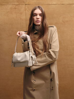 Keep your fall looks classy with this dark brown sculptural bag. Featuring an exquisite ruched handle, this stunner looks good both in the day and at night, and will complement a midi dress exceptionally well.