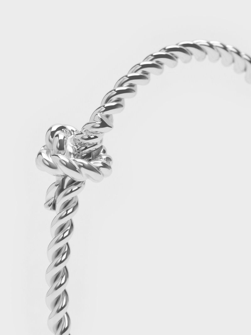 This Sable open-cuff bangle in silver is designed to resemble a piece of rope that is knotted in the middle. Use it to add a touch of elegance to your everyday outfits.