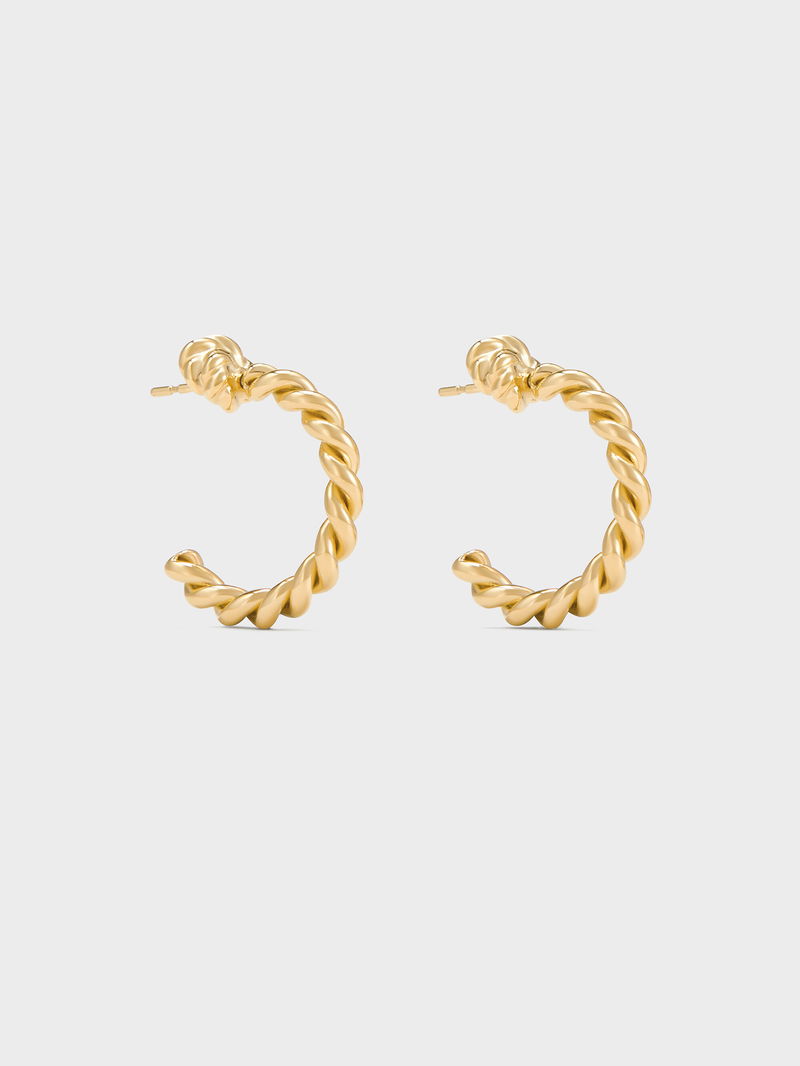 These Sable open-hoop earrings in gold feature a C-shaped construction, a rope-textured finish and rope-knot stud fasteners.