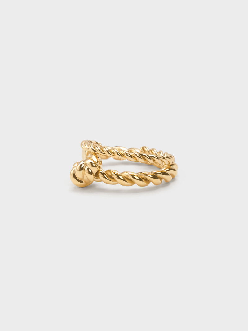 This Sable set in gold consists of two rings -- both are rope-textured, with the first being thin and plain, and the other adorned with a distinctive knotted detail. Stack them for a cohesive look, or wear them separately for styling versatility.