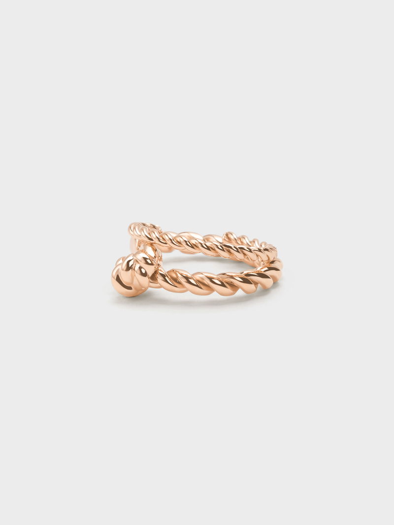 This Sable set in rose gold consists of two rings -- both are rope-textured, with the first being thin and plain, and the other adorned with a distinctive knotted detail. Complement your outfits with these stylish pieces for a touch of understated shine.