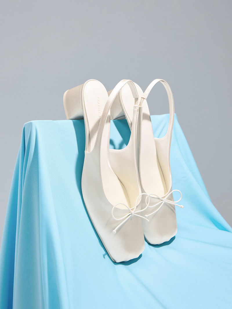 Sadira Satin Bow Square-Toe Slingback Pumps
