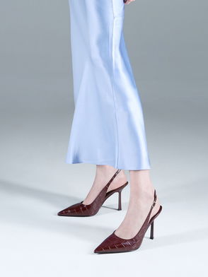 Slip into these pink-and-red satin criss-cross strap pumps to play up everyday outfits and stand out from the crowd. A sweet addition to any ensemble, they work well with a ruffle dress or denim jeans.