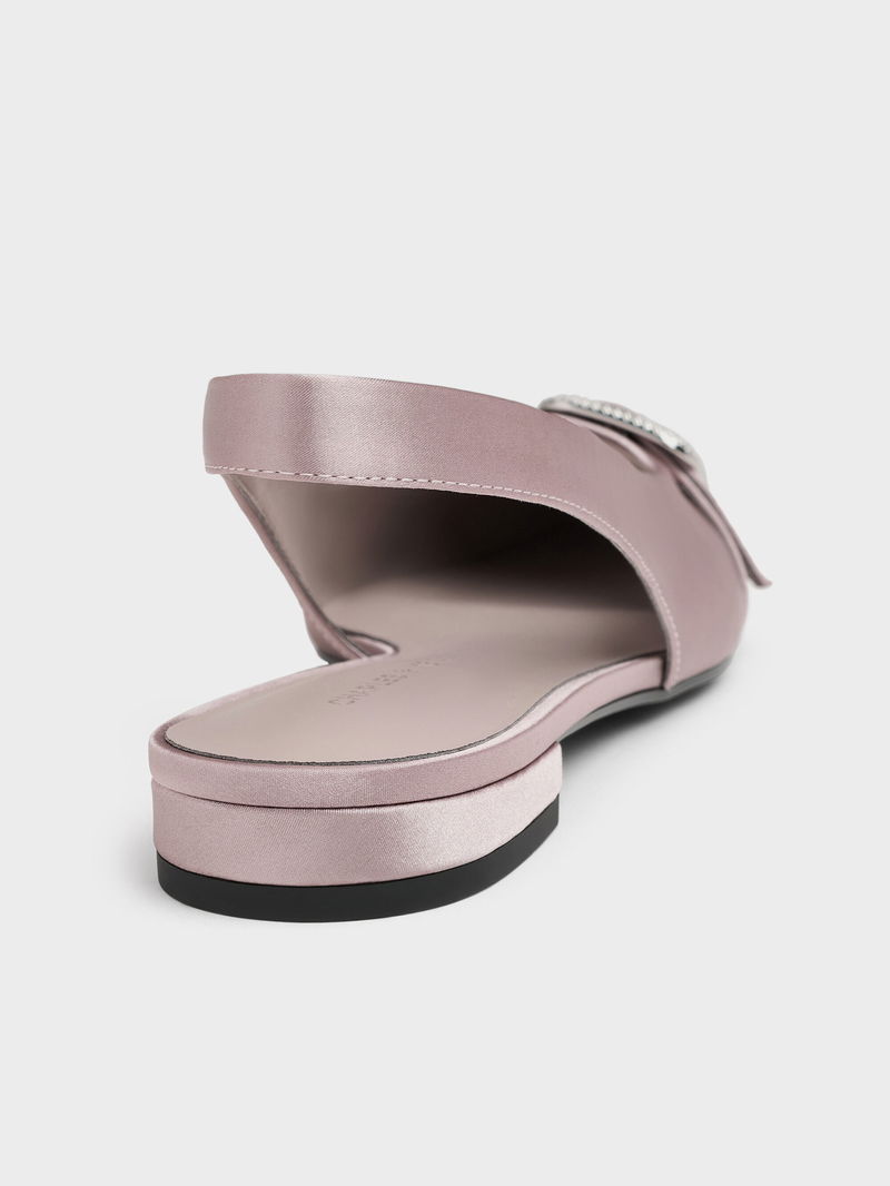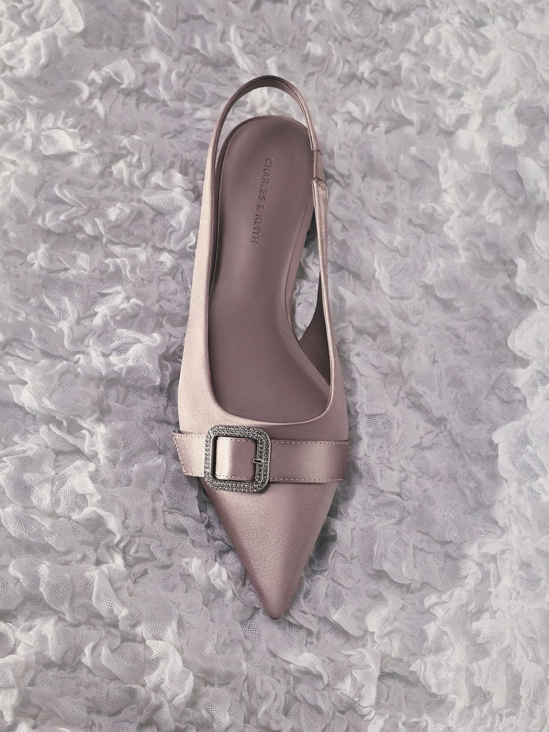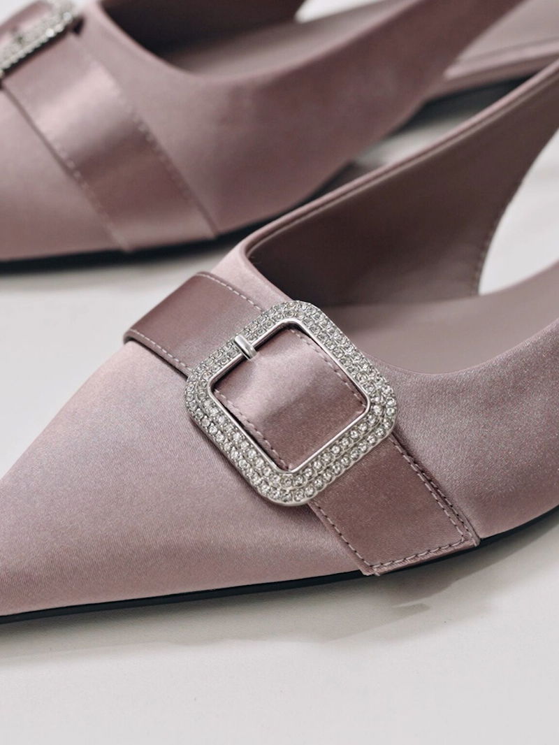 Satin Crystal-Buckle Pointed-Toe Slingback Flats