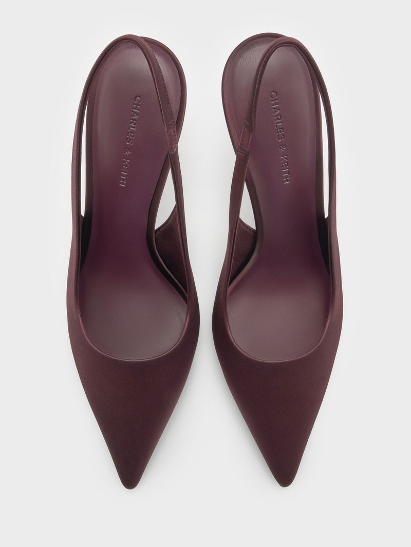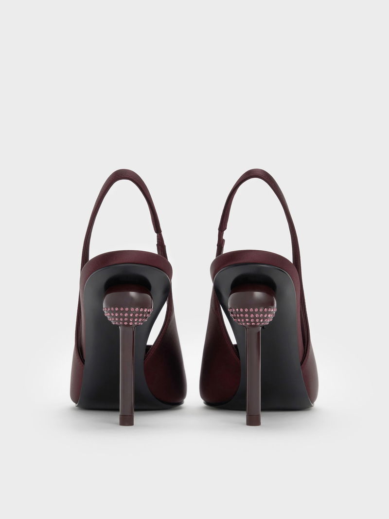 Satin Crystal-Embellished Ball-Heel Pointed-Toe Slingback Pumps