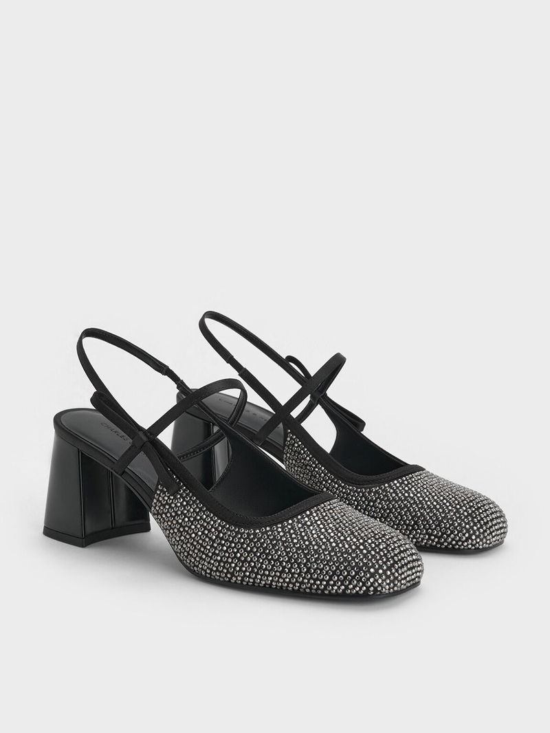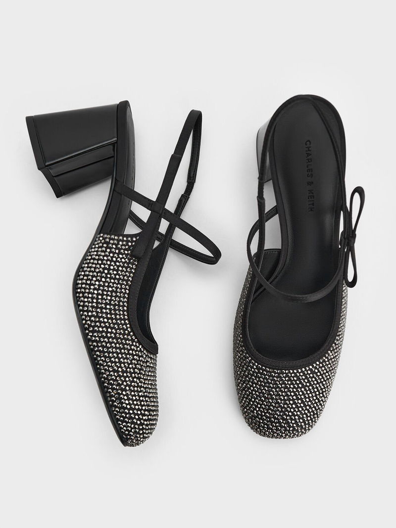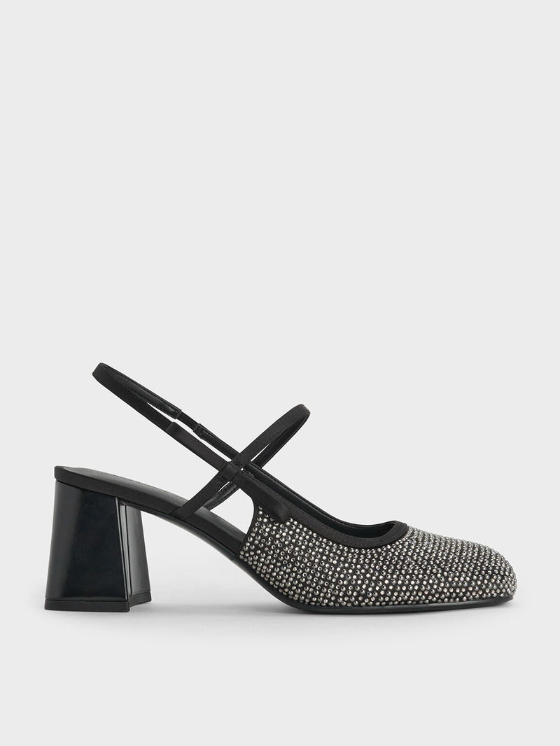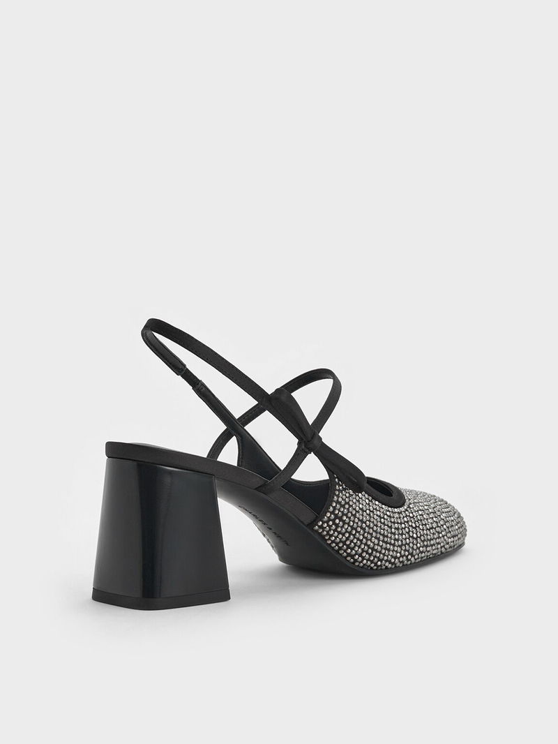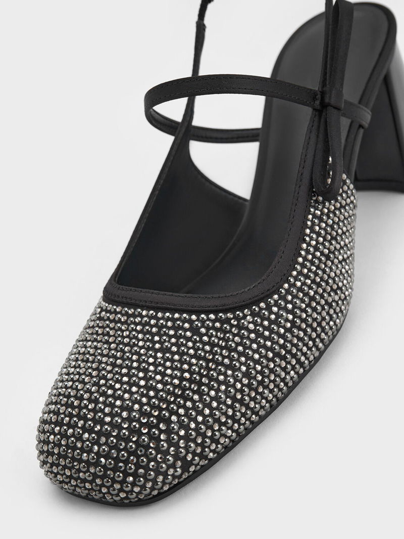 Satin Crystal-Embellished Slingback Mary Jane Pumps