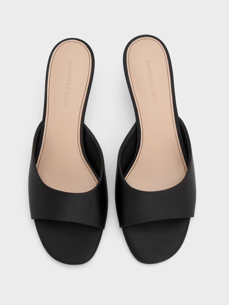 These mules in black are made with satin and feature open toes and visually striking sculptural heels. The slip-on design is convenient while the low heels offer a subtle stature boost and all-day comfort.