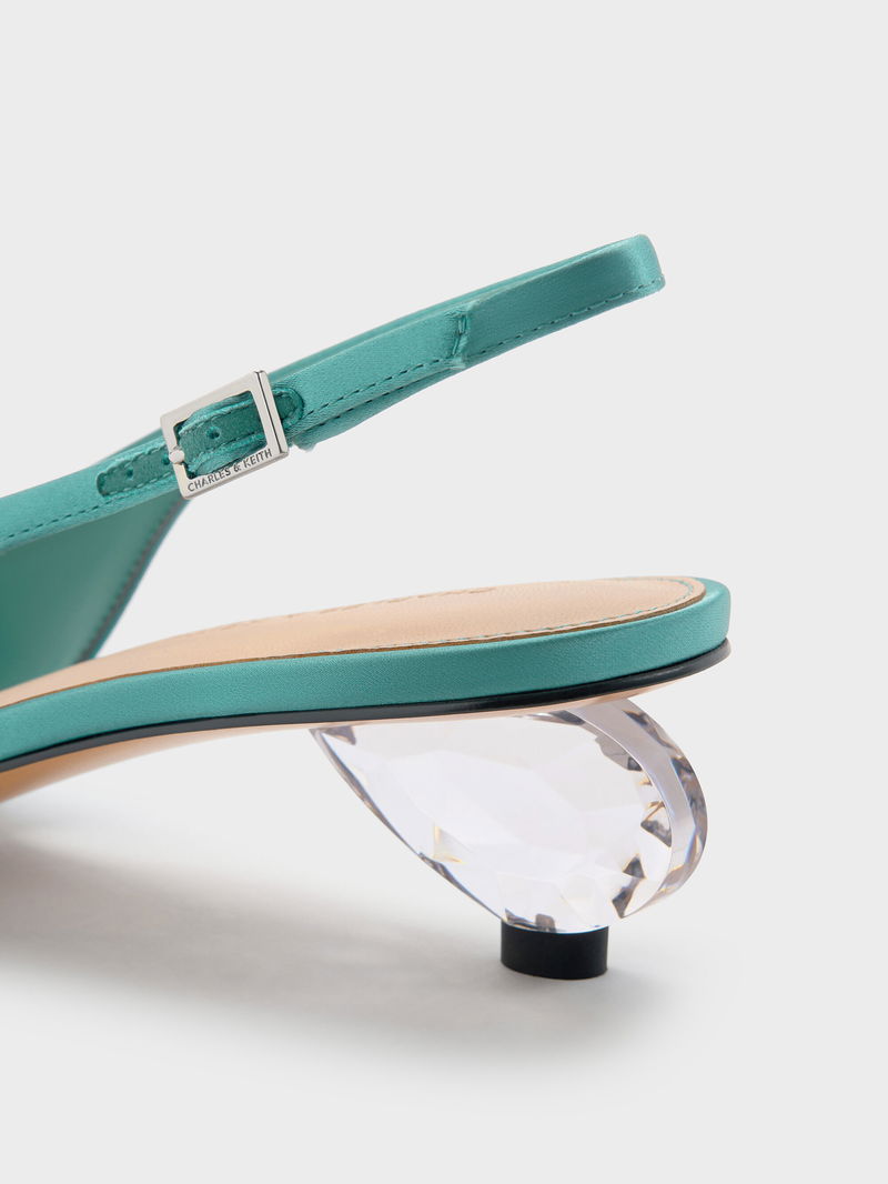 Satin Pointed-Toe Crystal-Heel Slingback Pumps