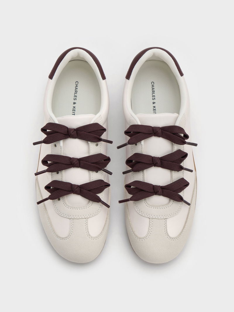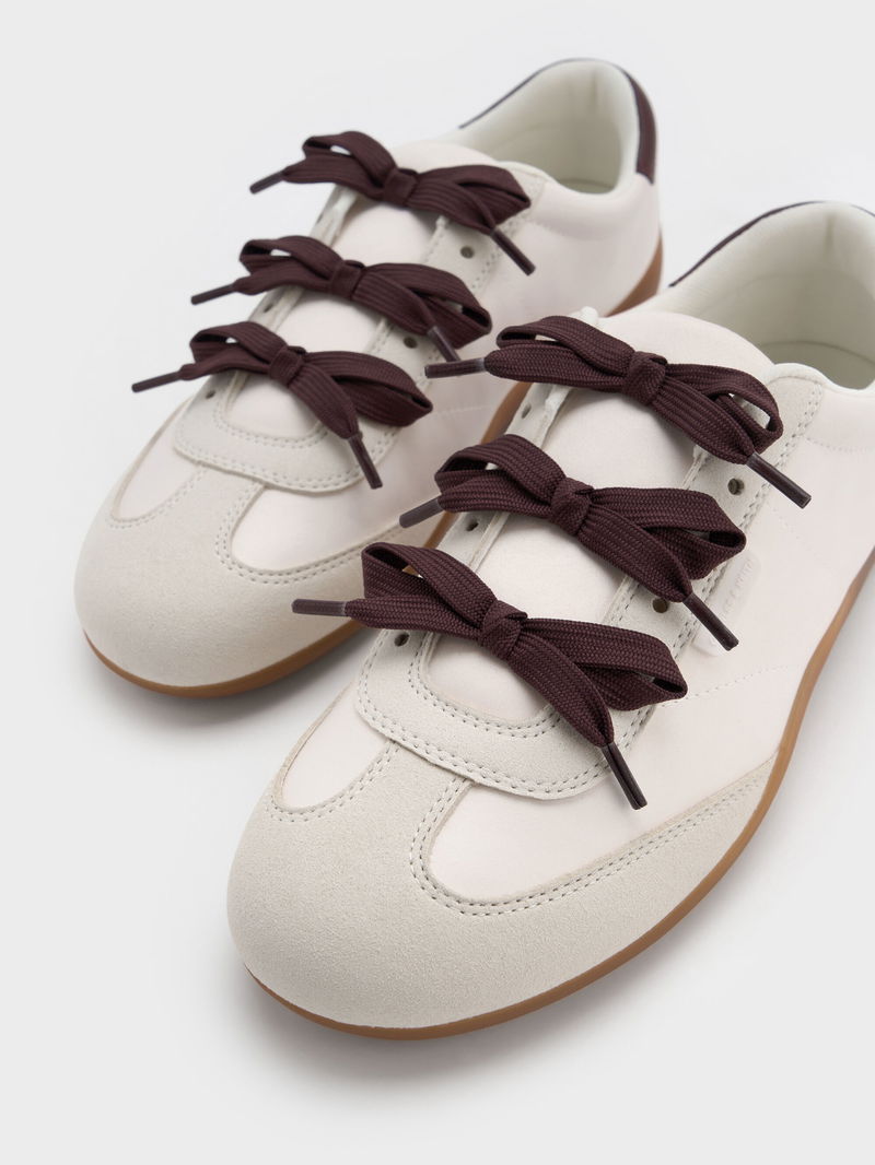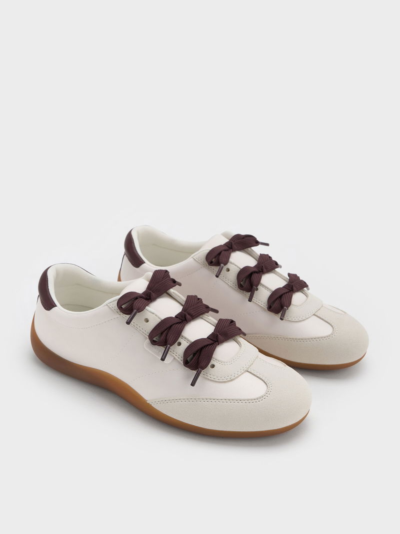 Satin Textured Contrast-Panel Triple-Bow Sneakers