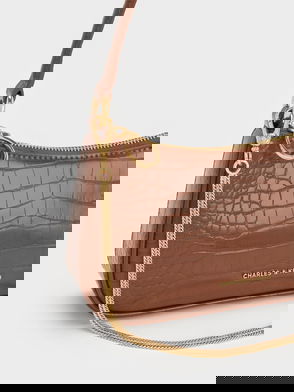 Perfect for storing your daily essentials. Style this burgundy mock-croc crossbody with an all-black outfit to emphasise its understated elegance.