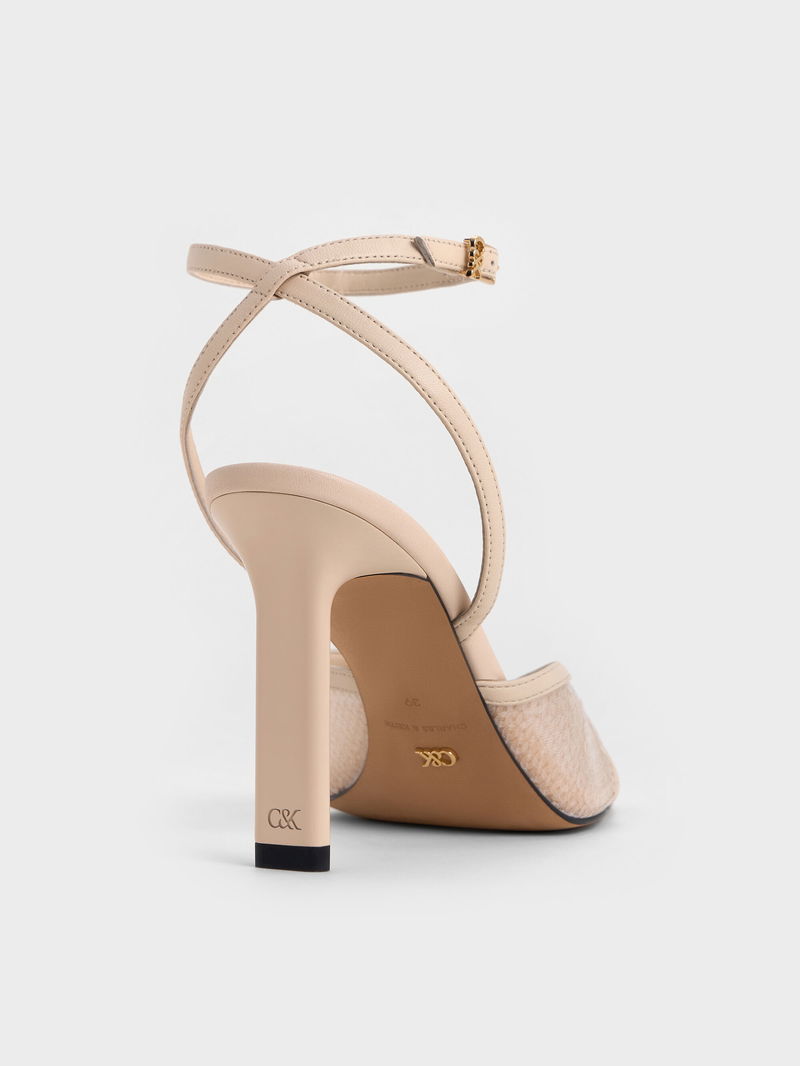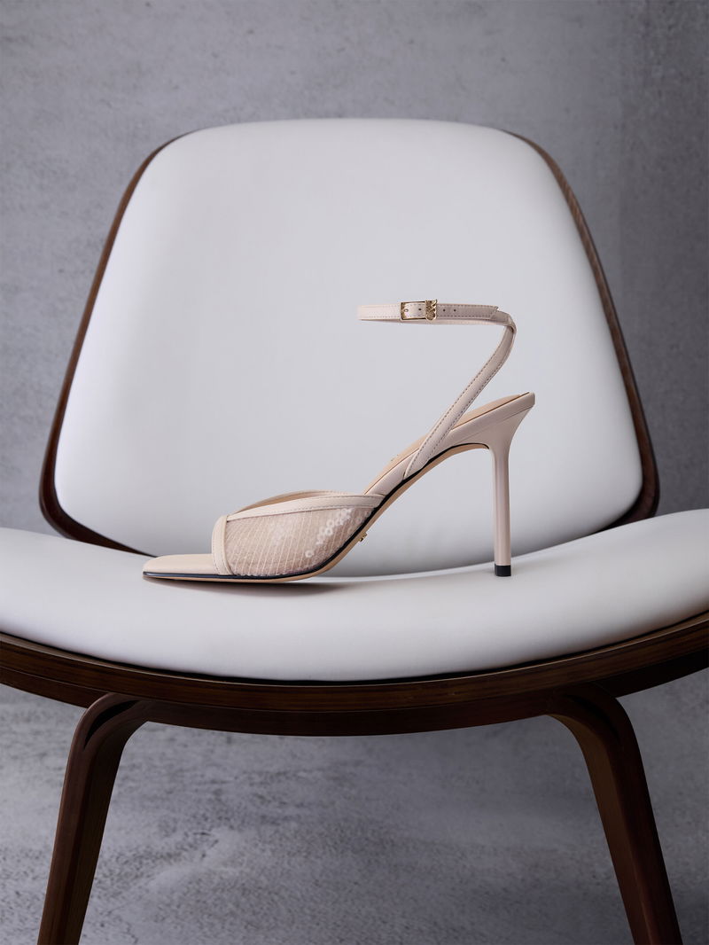 Sequin Mesh & Leather Ankle-Strap Heeled Sandals