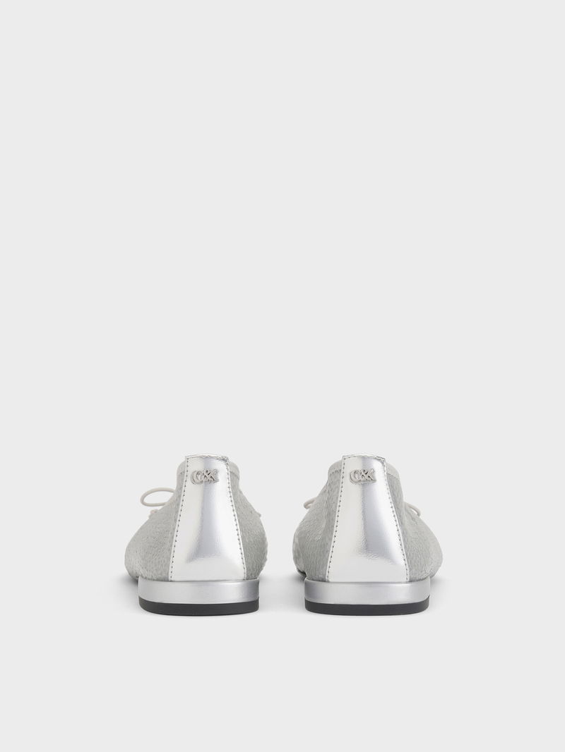 Sequin Mesh & Leather Bow Ballet Flats