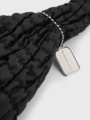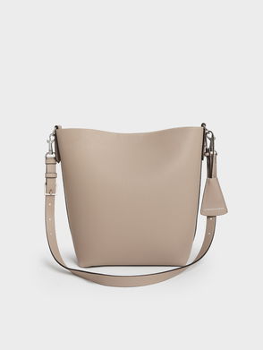 Play up stuffy workwear with this sophisticated prune slanted bucket bag. It adds a delicious dose of lavishness to a pantsuit ensemble. Comes with detachable pouch.