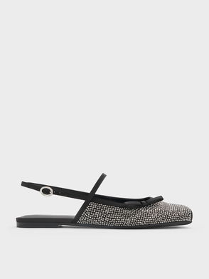These understated Mary Janes feature subtle but visually captivating design elements. Apart from the iconic straps across the vamps, these slingback flats are detailed with a cylindrical buckle that is embossed with our brand logo. In black, they will be a timeless and classic pair you can always count on. Style them with tailored shorts and a linen button-down shirt for a casual-chic weekend outfit.