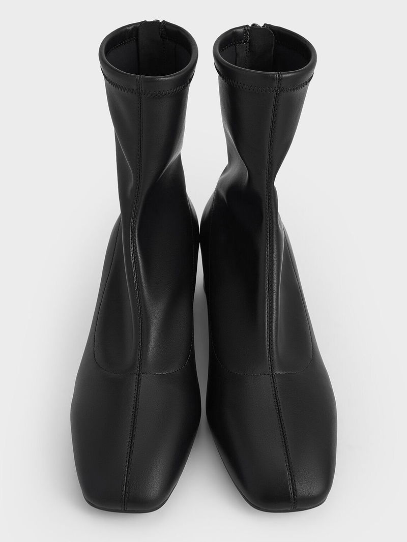 Stitch-Trim Heeled Ankle Boots