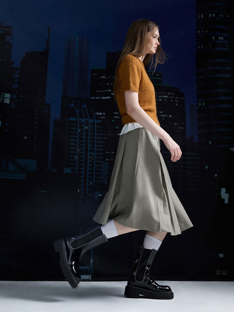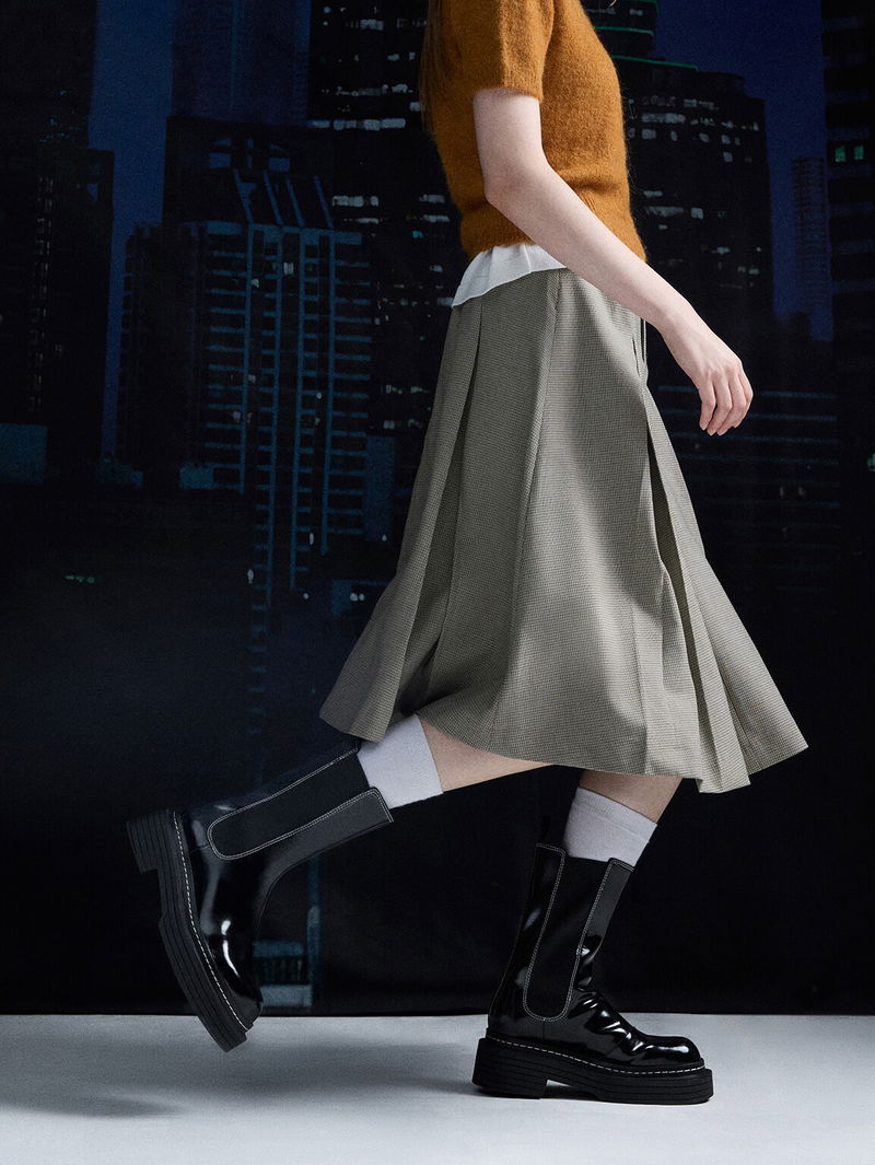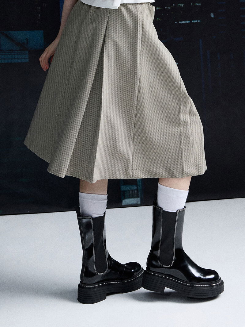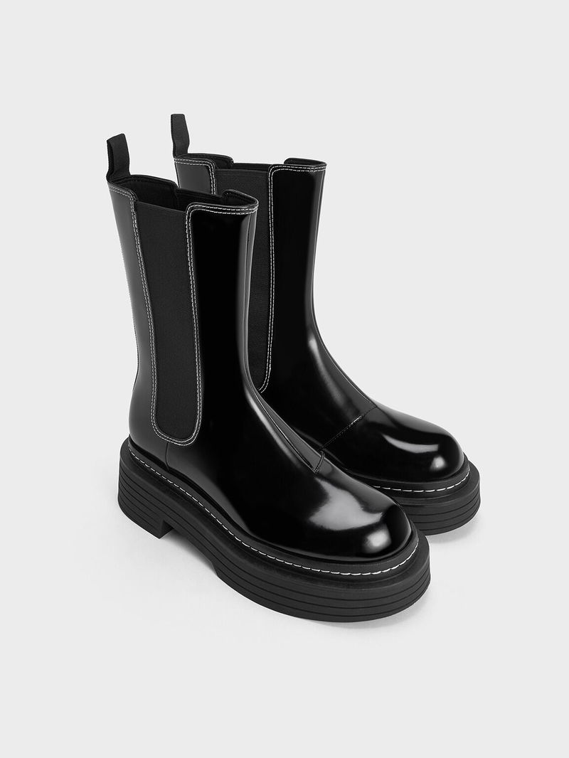 Stitch-Trim Platform Mid-Calf Chelsea Boots