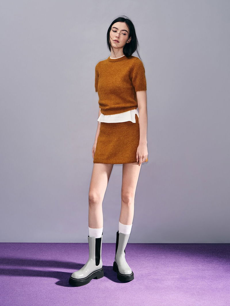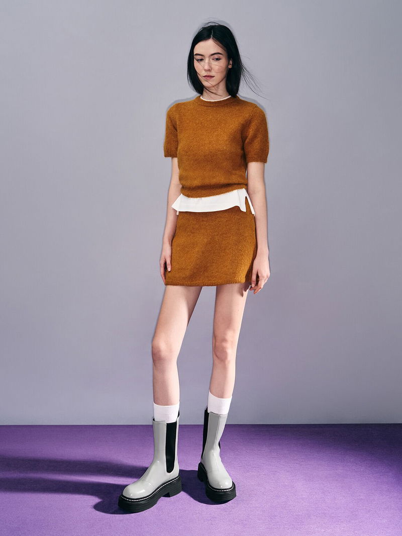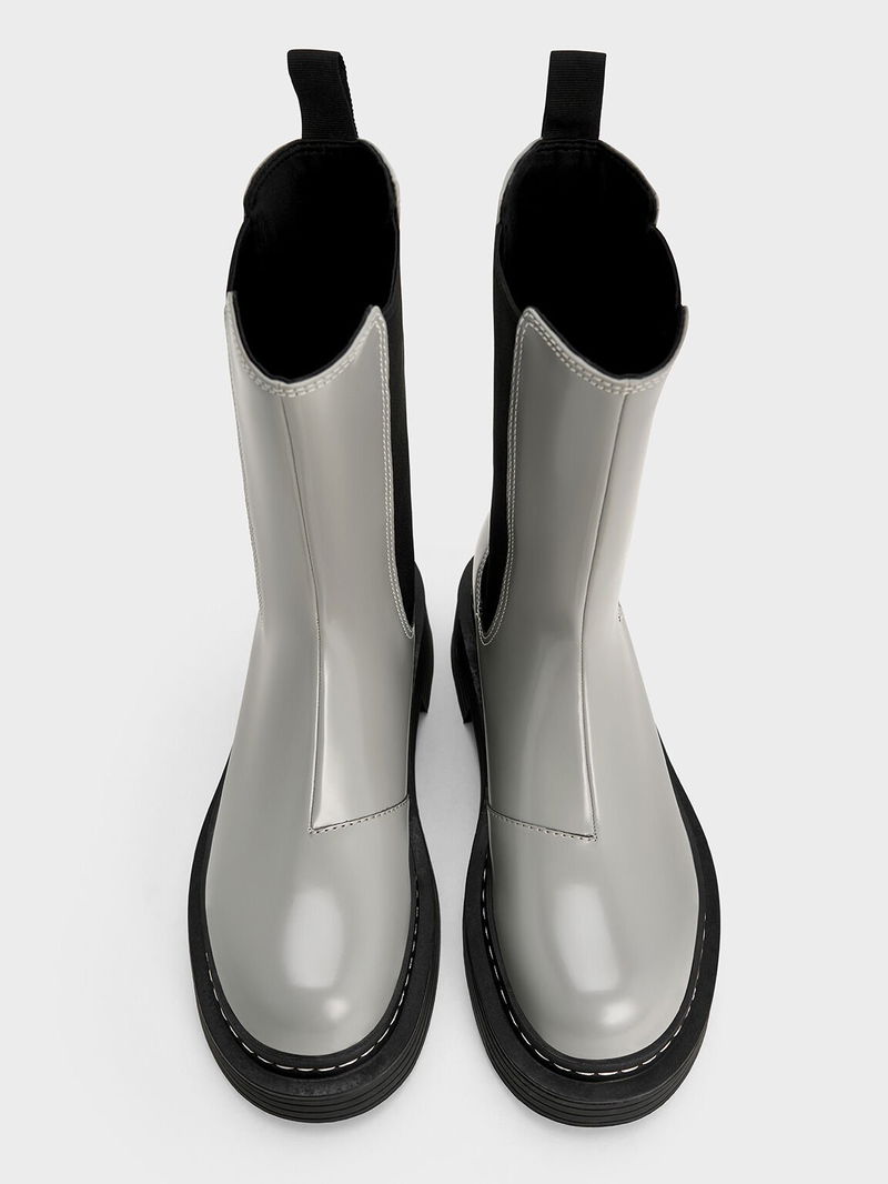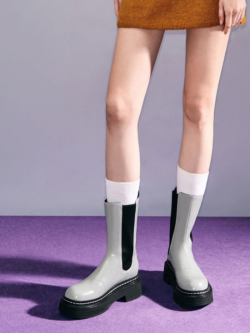 Stitch-Trim Platform Mid-Calf Chelsea Boots
