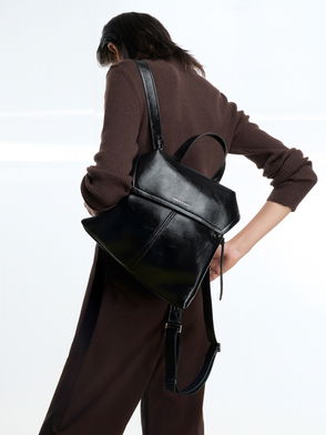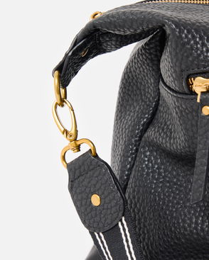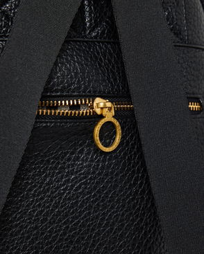 The perfect bag for your daily needs. This black stone-embellished backpack features a magnetic closure for easy access and was made to store everything you need and more. Style with a denim jacket.