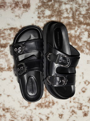 Pull your daily looks together with this polished pair of mules. Featuring a sleek strappy design that ensures a secure fit, this sophisticated pair works well for both work and play, and will remain comfortable throughout the day. In timeless black, they can be worn during every season of the year. Rock the casual chic look by pairing them with a floral dress, or throw on your favourite sweater for chilly days.