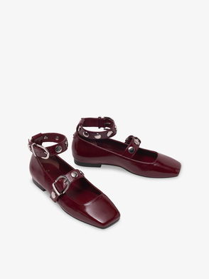 A shoe that offers 24-hour appeal. Let these nude-brown studded Mary Jane flats peek out from under flare pants, or use them to pull-together a midi skirt and chiffon blouse ensemble.