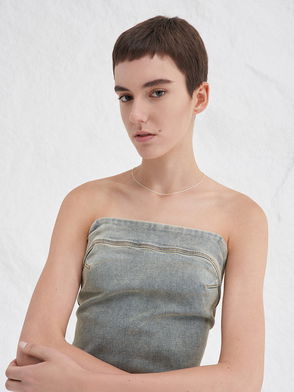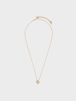 Sleek with a light serving of whimsical. This pendant necklace features a gorgeous Swarovski® crystal and minimalist design, making it a piece of jewelry that's sure to stand the test of time. A timeless gold finish incorporates easily into any outfit and instantly elevates your look with its elegant appeal. Show this beauty off with a off-shoulder top, maxi skirt and strappy sandals.
