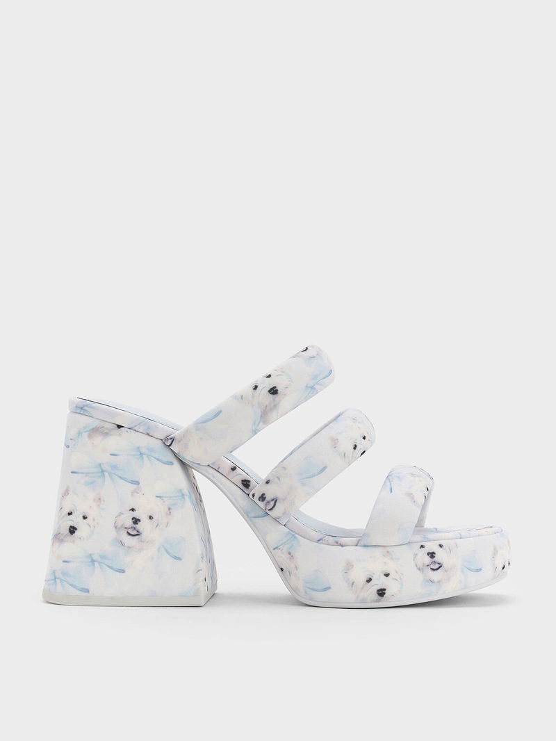 Tattie Dog-Print Puffy-Strap Platform Mules