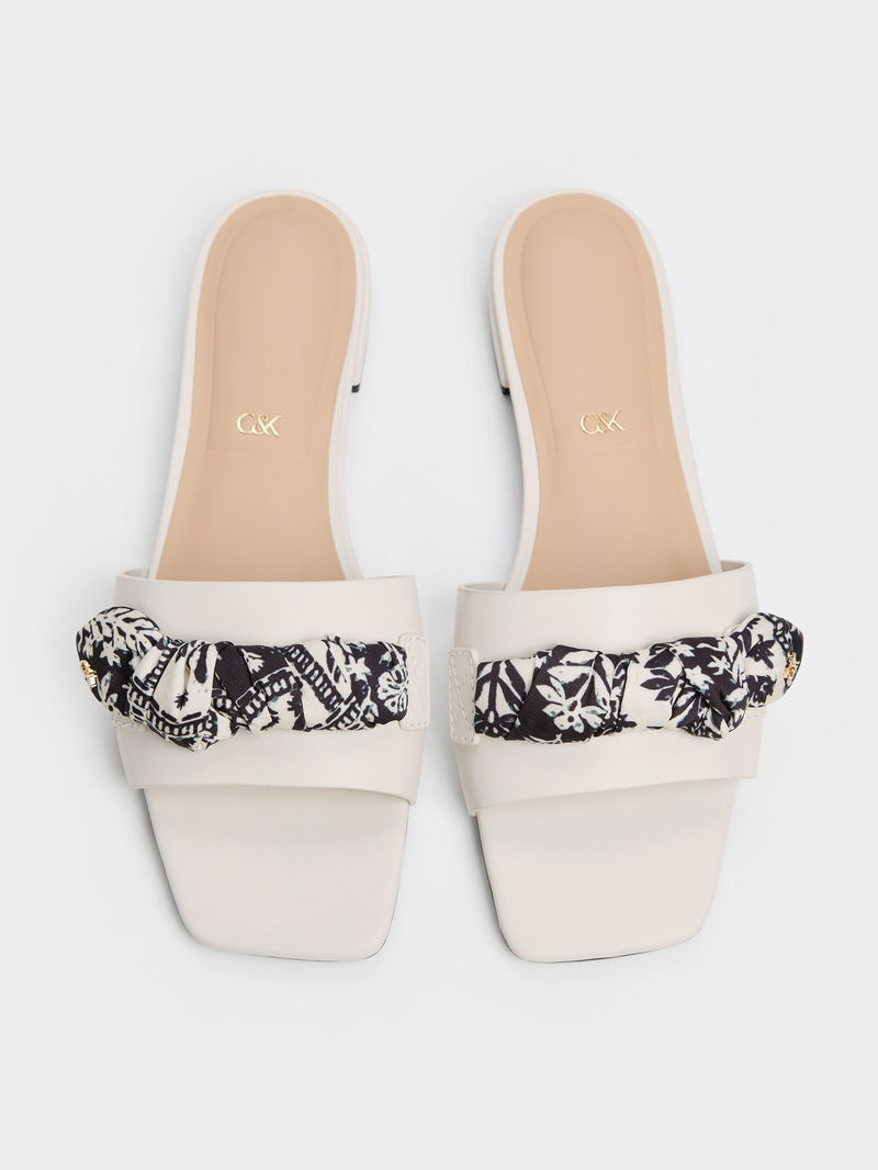 These Tayari slide sandals in chalk are made with genuine leather and feature printed scarf-wrapped straps, sharp square toes, and a minimalist wide-strap design. Use it to bring soft tactility and subtle sophistication to your relaxed-chic weekend looks.