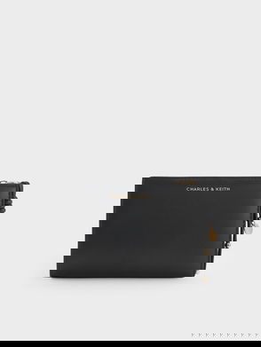 Timeless, sleek and versatile, our padded Sonia wallet is a practical must-have for the new season. The long, compact design fits your essentials perfectly, while a push-lock closure keeps them within reach throughout the day. Plus, it comes with an additional chain and bag strap if you want to wear it crossbody. Consciously crafted from recycled nylon, this black number is made to stay in your wardrobe for a long time. Nail your monochromatic look when you style it with a white jumpsuit and black block heels.