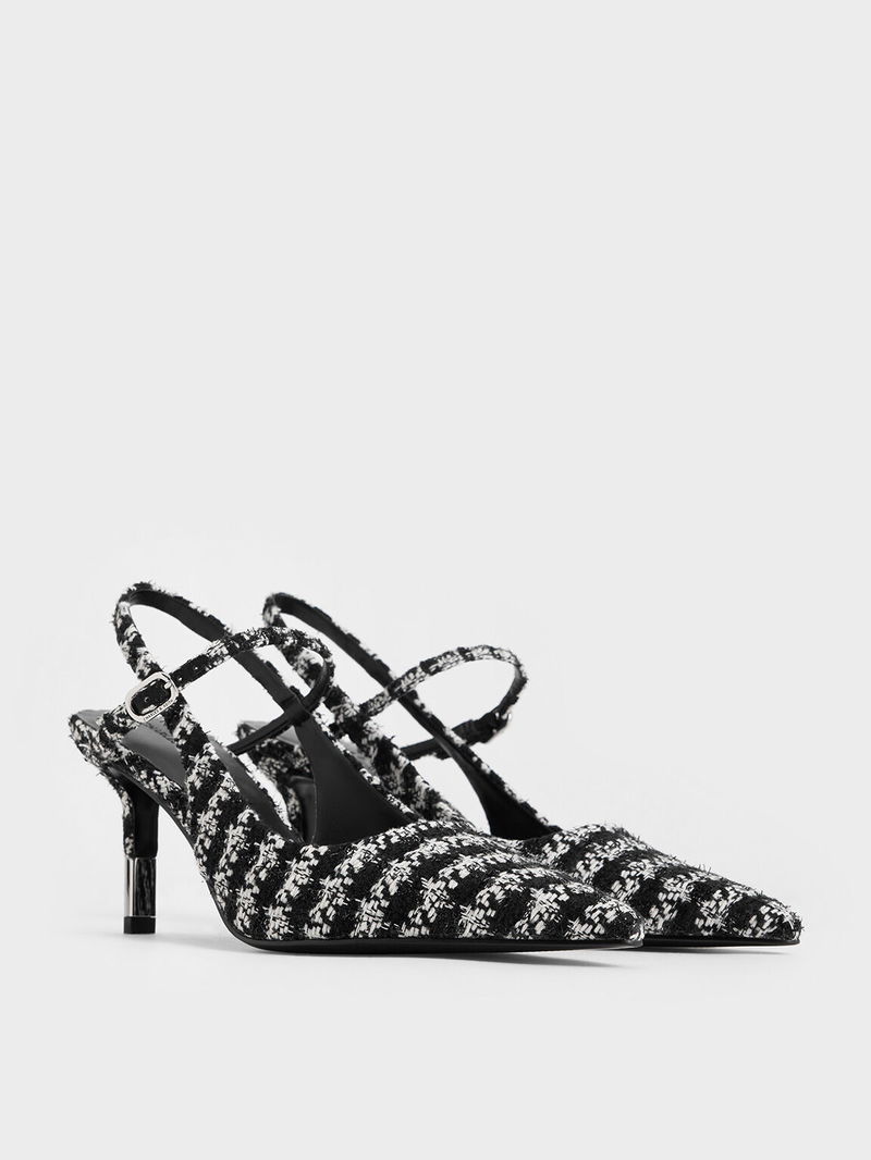 Tweed Two-Tone Heel Slingback Pumps