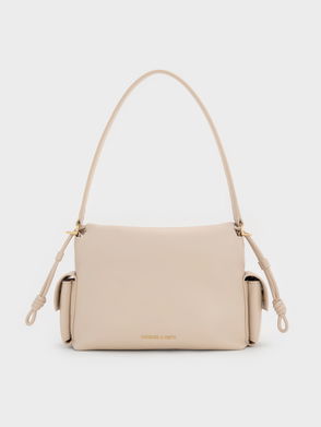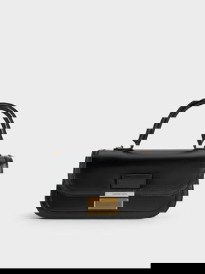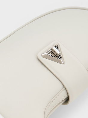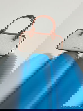 Introduce playful designs into everyday looks with this yellow-and-white angular flap bag. We're also loving the gold-tone top handle. Style with a cream satin dress and blazer.