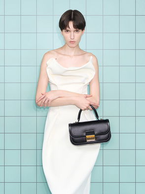 A timeless top handle bag with a distinctly modern aesthetic. Play up stuffy workwear when you style this attention-grabbing bag with pantsuits and pencil skirts.