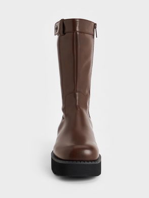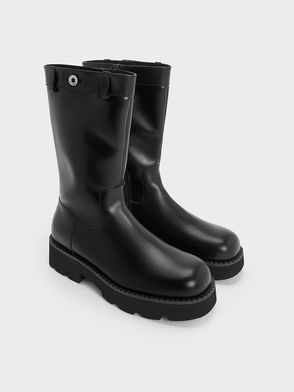 Add a cool edge to your winter ensembles with these flare heeled dark grey and mustard yellow calf boots. Keep them in full focus when you pair them over tights and short hemlines.