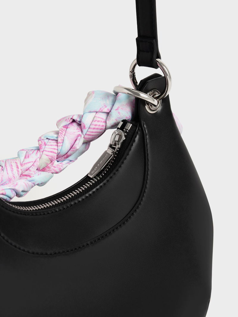 Say hello to the new must-have accessory this season: the Ulani bag. It boasts a unique geometric design and a distinctive top handle braided with a beautiful pastel scarf. Despite its standout design, this one-of-a-kind carrier will perfectly complement any outfit you choose to wear. Carry the bag by its top handle for an elegant look or go hands-free with the adjustable strap for a laid-back aesthetic.