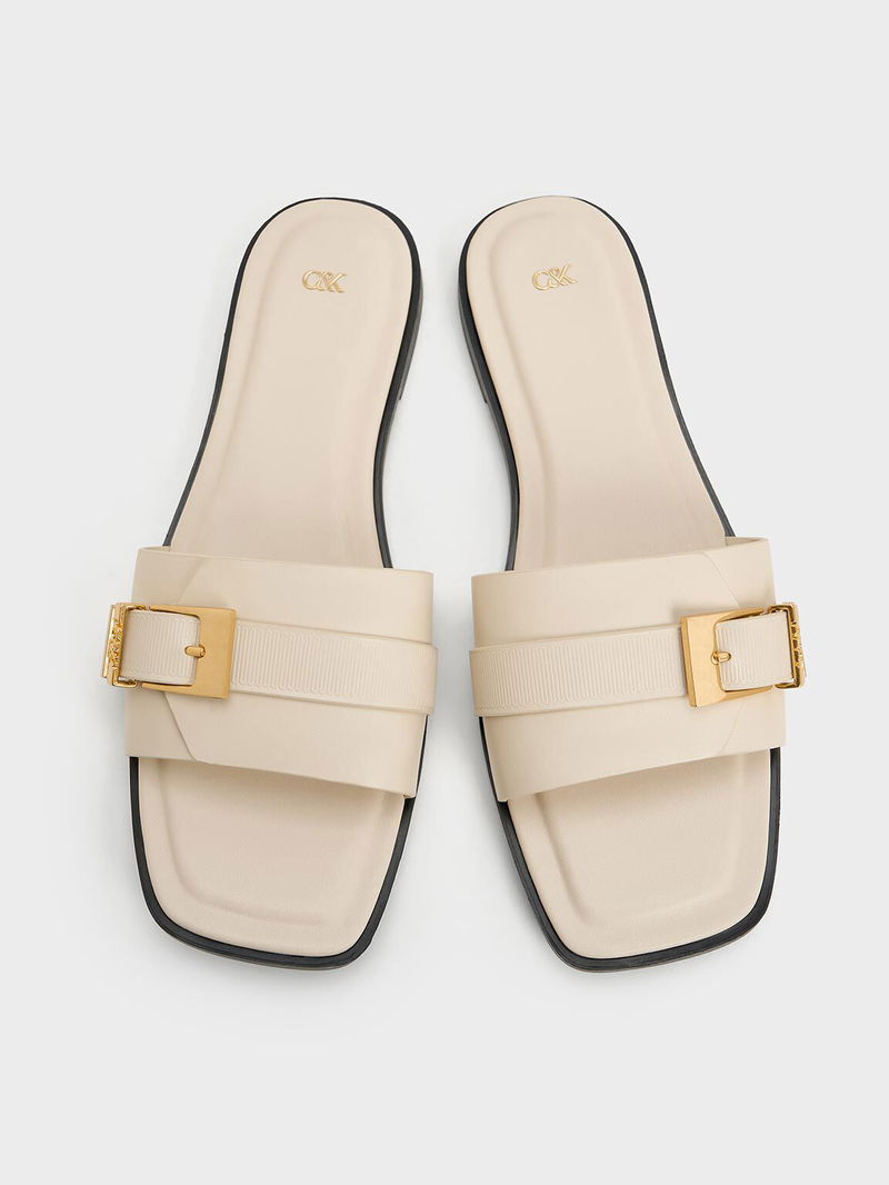 Whitney Leather Buckled Square-Toe Slide Sandals