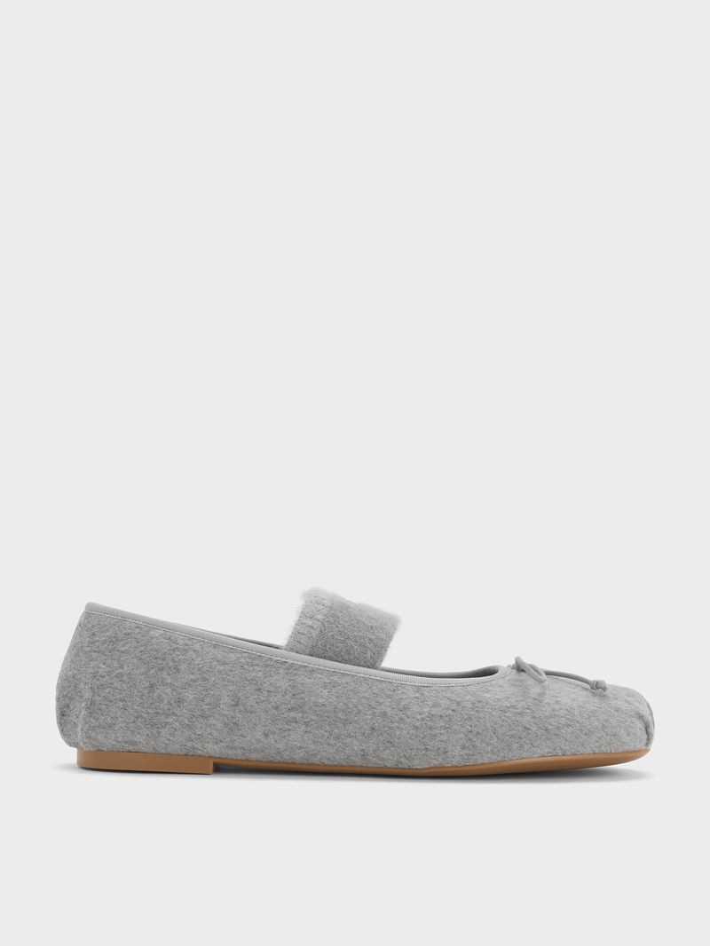 Winona Felt Bow Furry-Strap Mary Jane Flats