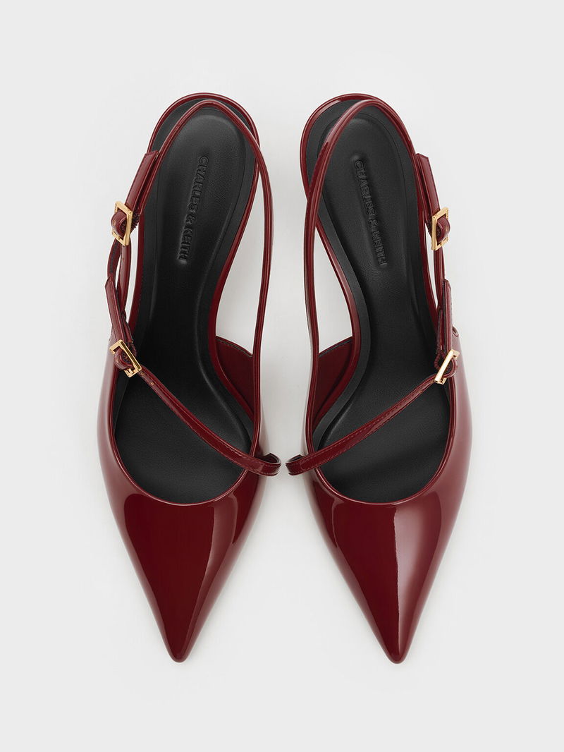 Wynn Patent Buckled Sculptural-Heel Slingback Pumps