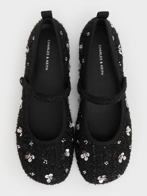 Get acquainted with the shape of the season: square-toe. Rendered in recycled satin and featuring an intricate hand-drawn quilted embroidery design, these black Mary Jane shoes are the perfect starting point to build any outfit around—just add a floral sundress and a boxy bag. Part of Danish designer Cecile Bahnsen's collaboration with CHARLES & KEITH, this exclusive shoe collection takes inspiration from traditional schoolwear and showcases the designer's signature couture-like touch. The Cecilie Bahnsen collection is not applicable for promotions and promo codes except for VIP discounts.