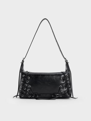 Let this Xylia shoulder bag in vinyl denim be the perfect complement to all your cool-girl outfits. Re-interpreting the classic 90s baguette bag, this piece exude a decidedly bold and edgy aesthetic that is made for the modern woman of today. For the girl who loves carrying more than her essentials, this bag offers a roomy main compartment as well as side zips for keeping your most-used items within easy reach.