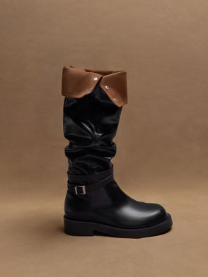 Transition into the new season with this killer pair of calf leather ankle boots. Nail monochrome chic when you style these beauties with a black knitted midi dress.