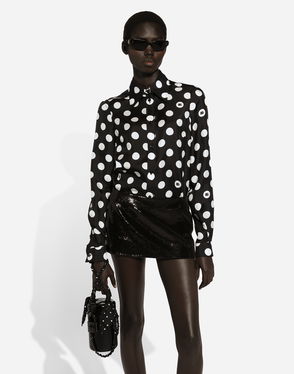 This biscotti long sleeve t-shirt with black polka dots is a perfect summer staple. In a warm, skin-flattering shade of biscotti, it will look super chic in the summer months.