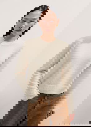 In true Chinti & Parker style, this cream sweater is given a fun update by way of rainbow-hued stripes at the cuffs and hem. It’s shaped for a classic fit, with a crew neckline and long sleeves, for an effortless take on weekend dressing. Team this luxurious wool and cashmere-blend style with complementary track pants for the ultimate off-duty aesthetic.