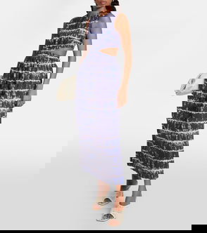 If you’re after a statement dress, then look no further than this knitted multi coloured merino wool maxi. Interspersed with multicoloured stripes in graduated widths, it features a ribbed-knit waistband which moves into a chic A-line skirt. Let this dress do the talking by teaming yours with simple accessories.