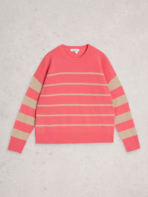For the new season, Chinti & Parker looked to French style icons such as Françoise Hardy to inspire the collection. The Jeanne top is knitted from cloud-soft cashmere and features wide navy and cream stripes throughout. It is shaped for a flattering fit and finished with an orange ribbed-knit hem.