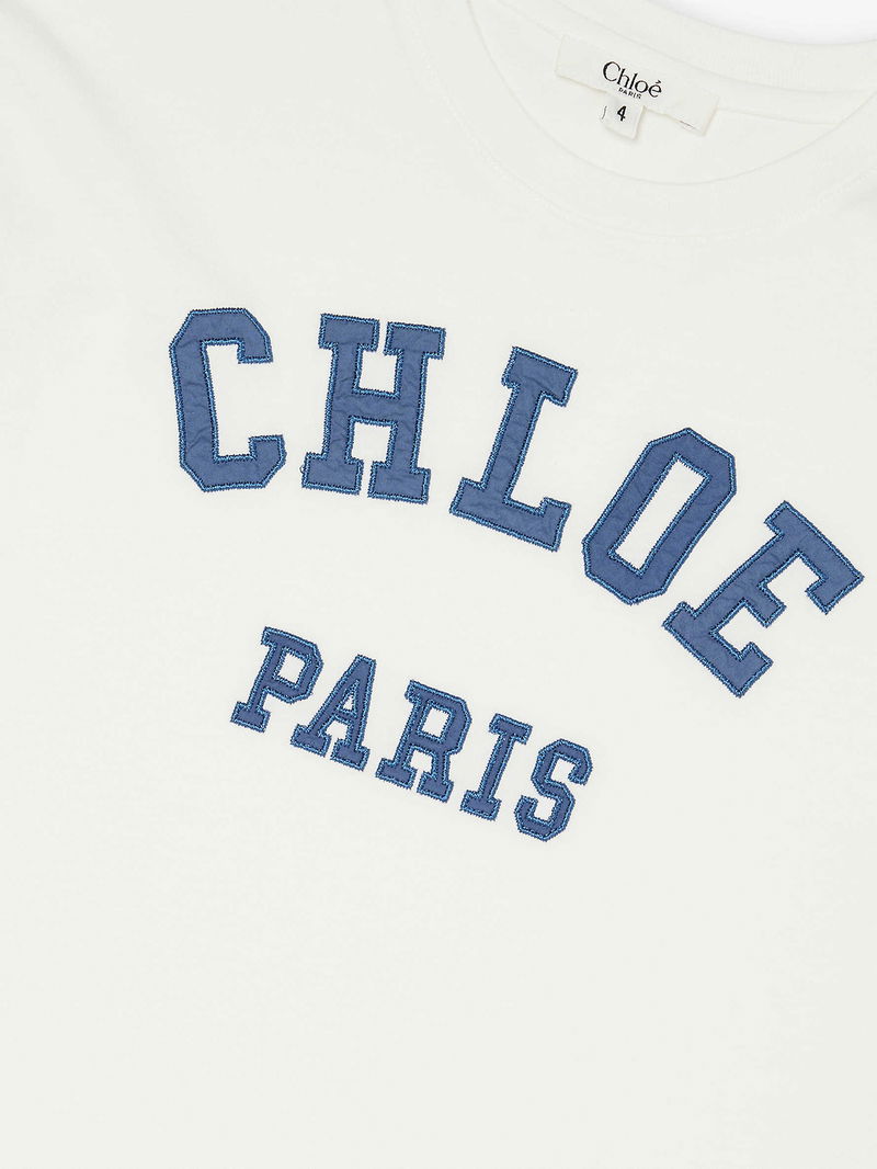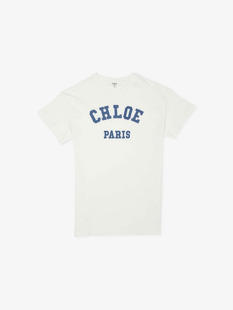 Chloé cotton-jersey dress. Relaxed fit, H-line shape, ribbed round-neck, short sleeves, brand patches at front.