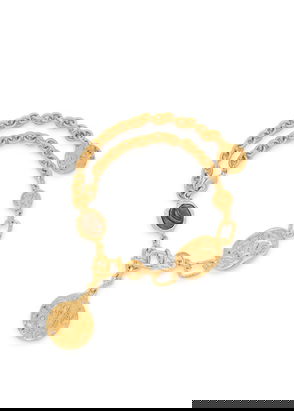 Chloé metal necklace. Hanging chain detail at sides with designer-engraved charms, horse pendant, designer-engraved tag. Adjustable lobster-clasp fastening.