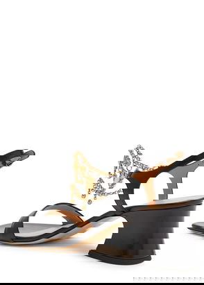 Open square toe, ankle strap, single strap at front, Chloé embellished charm chain at front, block heel