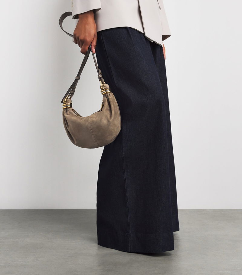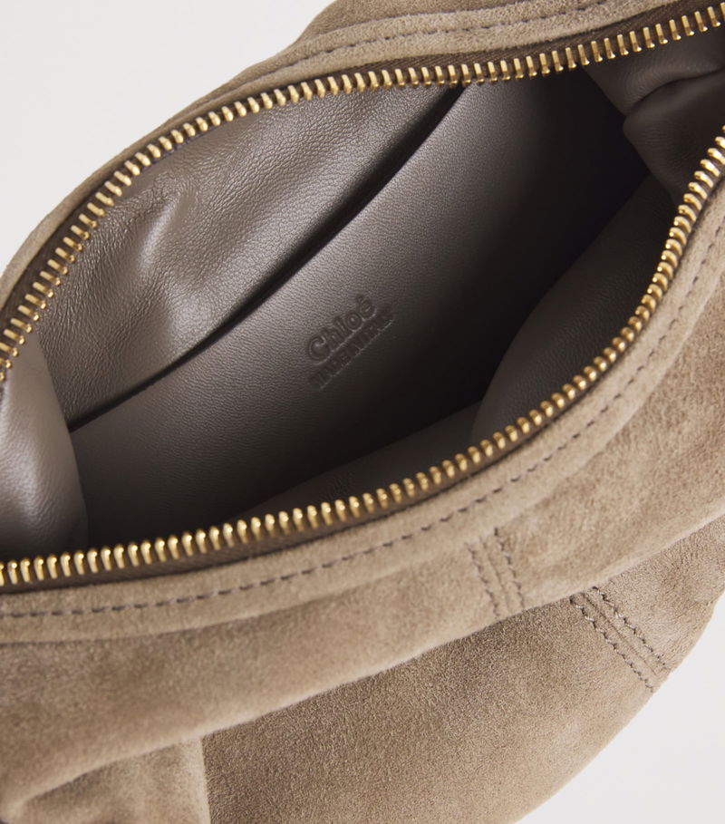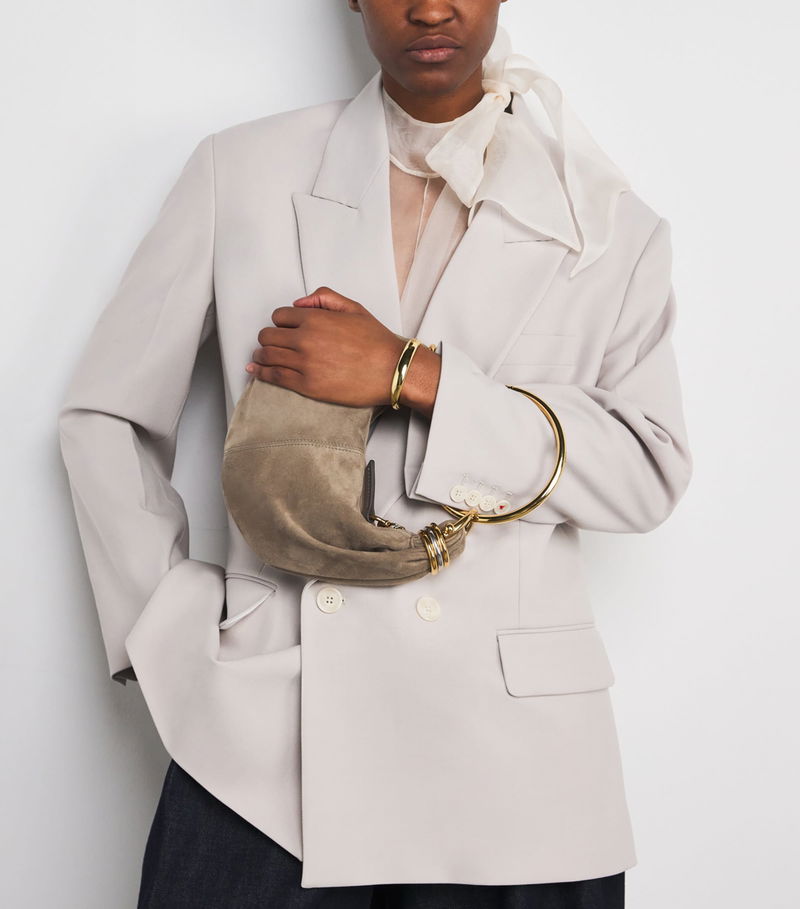 Chloé is renowned for its carefree, bohemian-influenced approach to fashion design, but the Maison is equally enamoured with architectural hardware. The Bracelet top-handle bag rests comfortably in this intersection, boasting a slouchy lambskin suede profile suspended from a gold-tone ring - the detail from which the style gets its name - making it an eccentric two-in-one statement accessory.