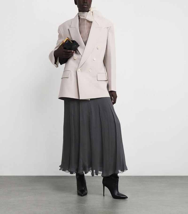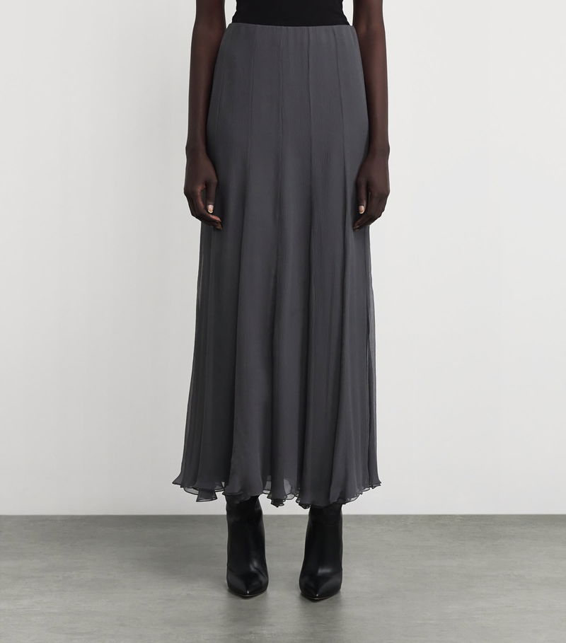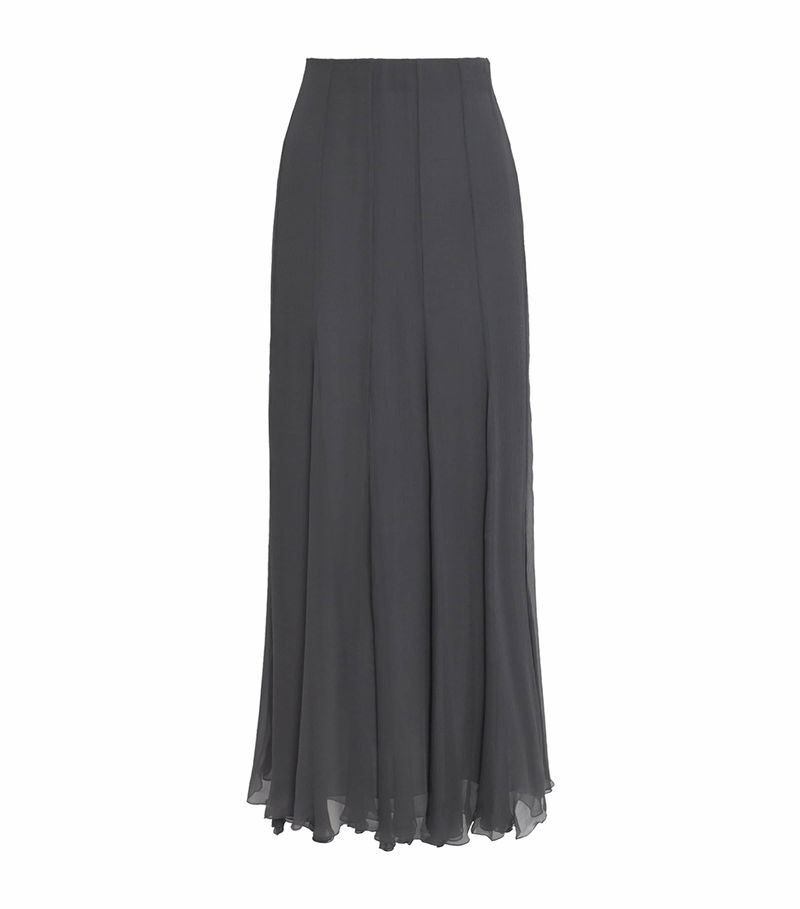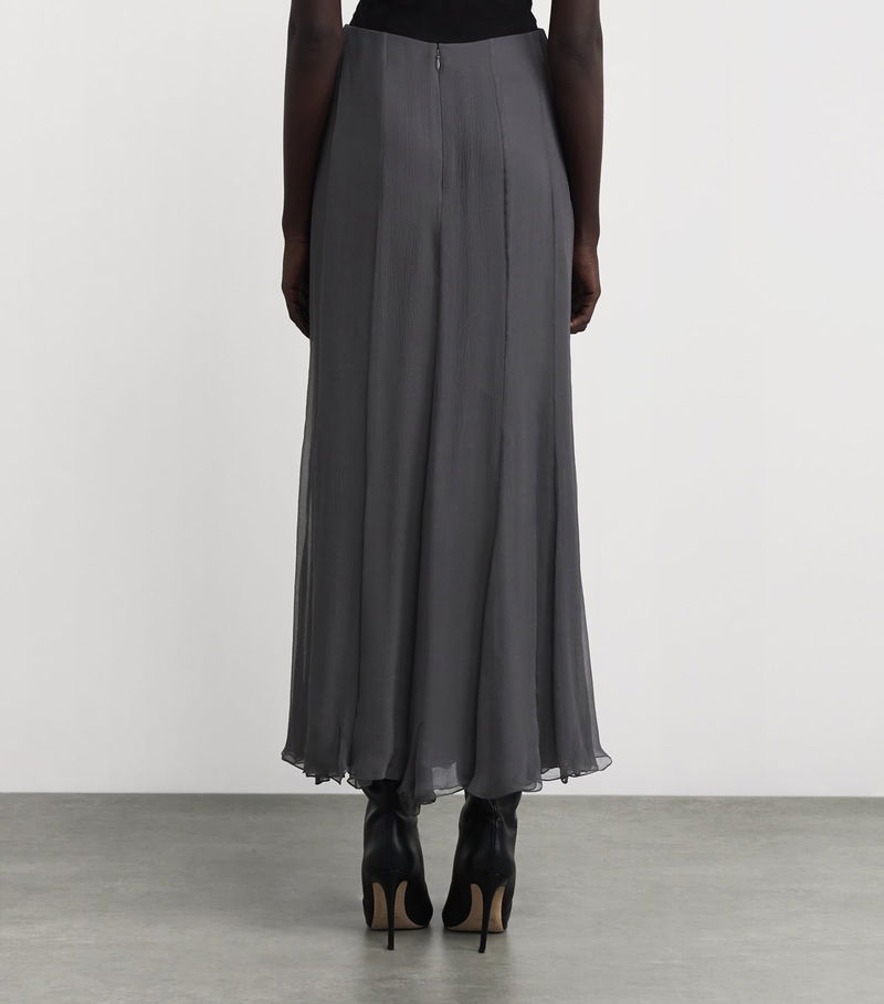 Gracefully crafted from organic silk mousseline, this Chloé maxi skirt is a study in elegance and movement. Its gathered silhouette and delicate flounces create a romantic, ethereal effect, complemented by a soft silk-mix lining.