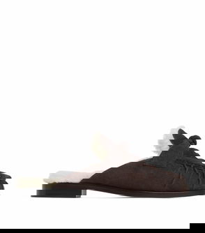 True to form, the pair is classically bohemian with stud details, a gold-tone buckle and a traditional wooden heel, while the sleek suede covers a plush shearling lining that makes this pair appropriate for even wintertime styling.